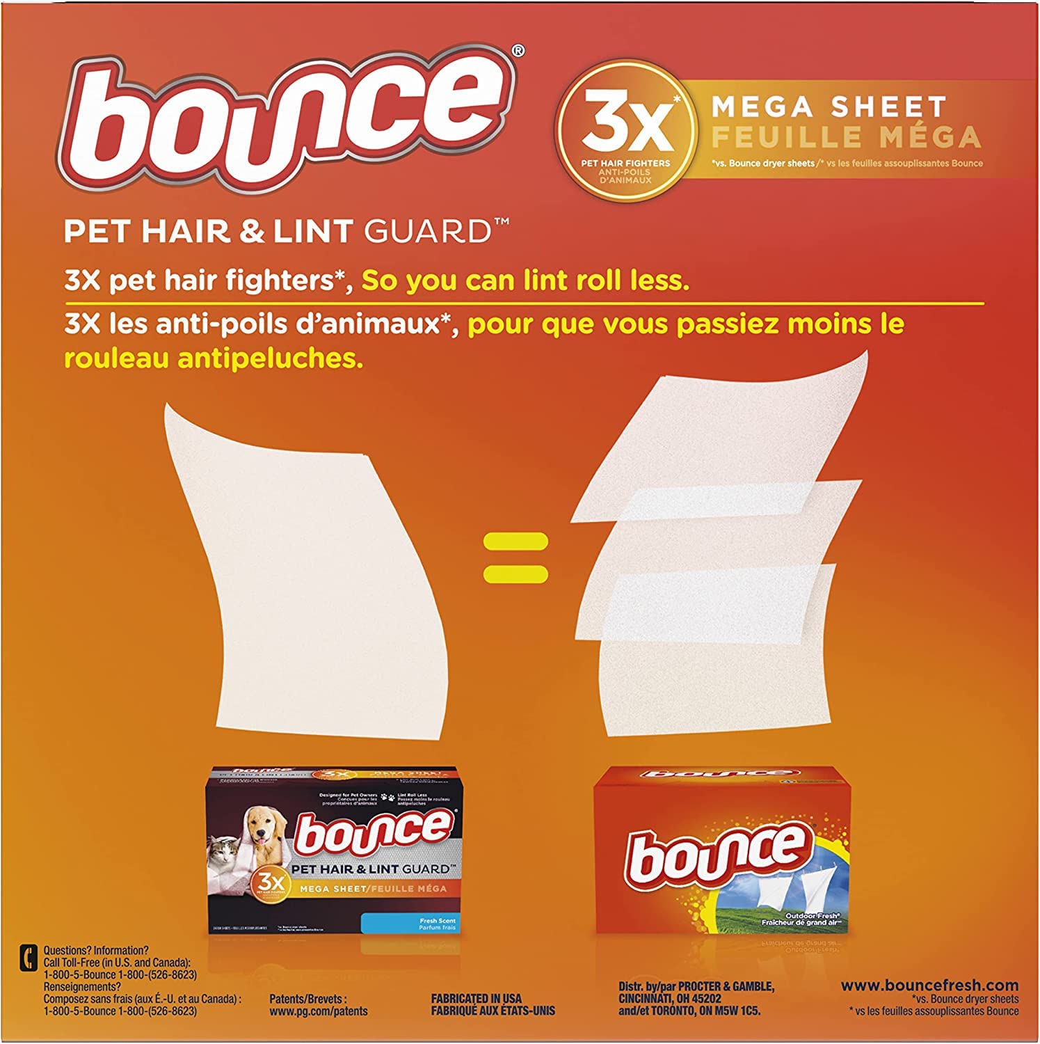 Amazon Com Bounce Pet Hair And Lint Guard Mega Dryer Sheets For Laundry Fabric Softener With 3x Pet Hair Fighters Fresh Scent 120 Count White Health Household